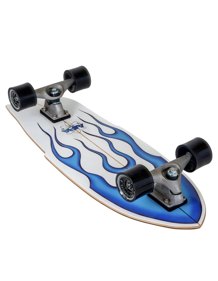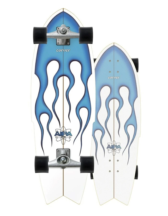 In 1974 Ben Aipa, the legendary Hawaiian surfer and shaper, made his mark in surfboard history with the development of āDa Stingā, a quick-turning shape he first made for Larry Bertleman.Ā āI would watch him at the Lighthouse for a moment, and I could see what he was attempting to do⦠I knew he was the future, so I went back to the shop and imagined the kind of board dynamics heād need to get the maneuvers he was attemptingā Ben said.How perfect then that we would collaborate with the Aipa family to make a Carver surfskate model that also achieves the same quick turning, fast pumping maneuvers we pioneered for skateboards in 1996. The clear sugar coat grip shows off the classic blue flames, one of the most iconic airbrush designs in surfboard history.