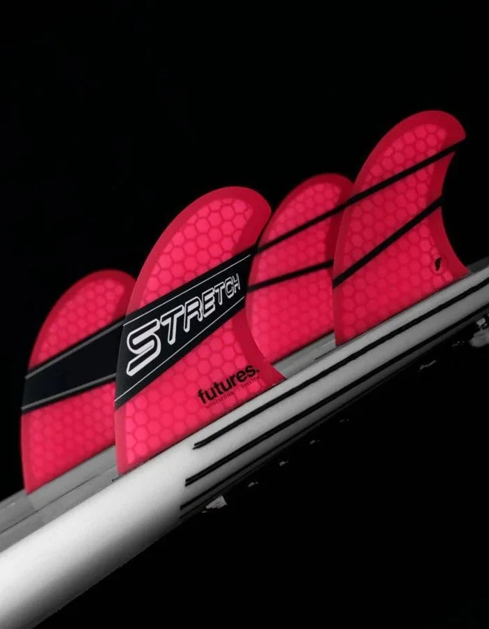 The Stretch Quad was designed by Santa Cruz shaper William ‘Stretch’ Riedel to generate speed and drive. The honeycomb material combined with a concave foil on the front fins provide a softer flex pattern ideal for building speed, while the inside fins include Stretch’s unique beak-tip template to provide ultimate performance.