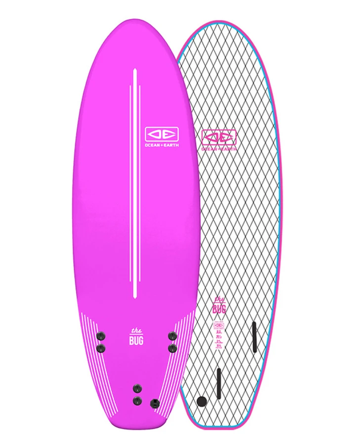 The Bug Mini 6’0″ is the largest in the range. This Soft Board is the perfect introduction to the waves with a soft, durable deck and X3 soft PU fins. This soft board has been designed for supreme stability to help the young ones learn and have a fun time!