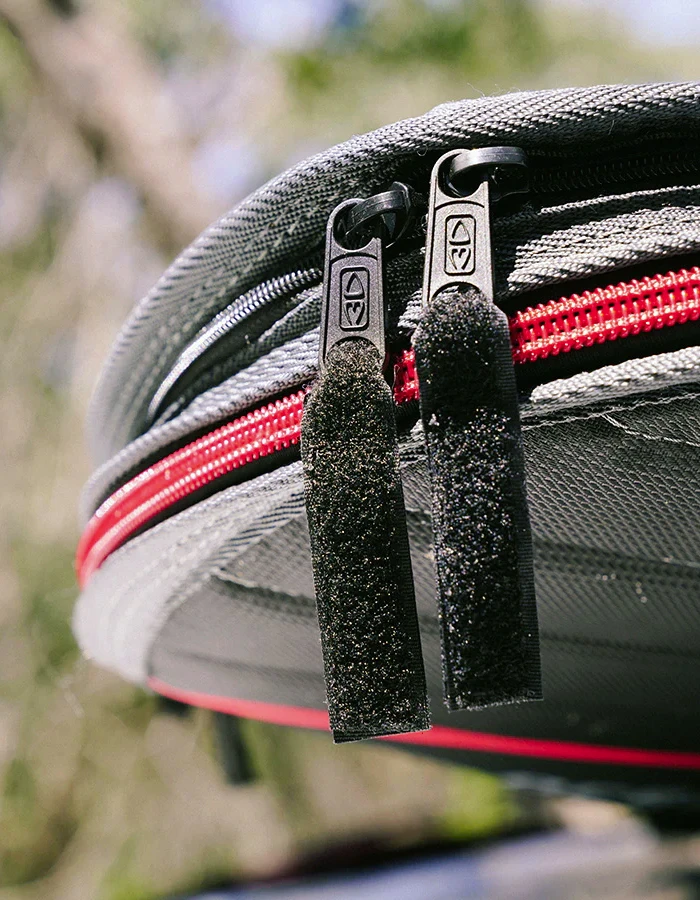 - EXPANDABLE TAIL GUSSET WITH AIRCON MESH –Â Accommodates boards with both fixed or removable fins. Open velcro gusset to allow for fins.