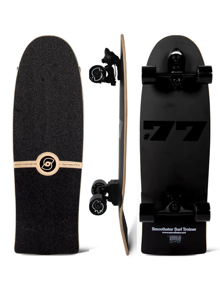 The 31” Toledo #77 is the newest SmoothStar model for our team rider and 2022 World Champion Filipe Toledo. Filipe was specific in the design process…and we delivered. The Toledo 31″ is a smaller cut down version of his 32.5″ model. This enables smaller and lighter riders to enjoy riding the #77 Toledo model. The matt black deck with his #77 in gloss is what Filipe wanted.